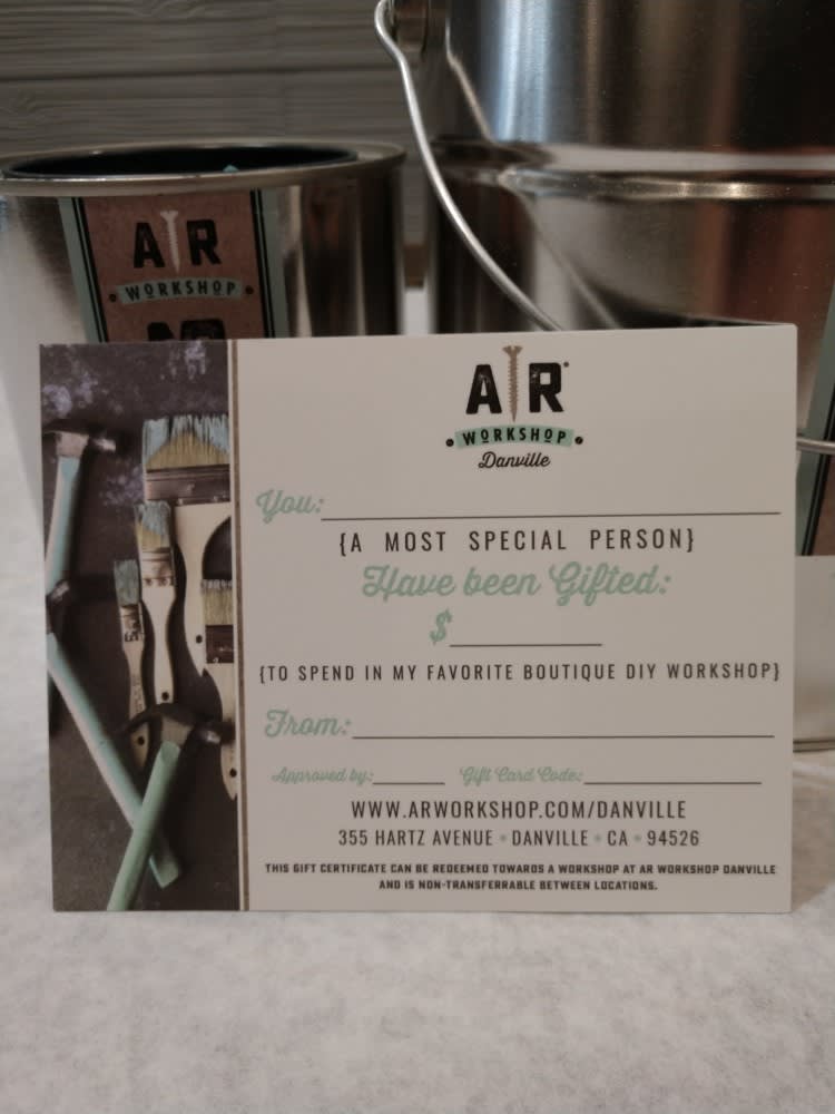 AR Workshop Danville is owned by Jennifer and Jim Ludlam. They are excited to bring a fun new venue to Historic Downtown Danville, California. AR Workshop Danville brings DIY Home Decor to the surrounding East Bay neighborhoods of Alamo, Blackhawk, Dublin, Lafayette, Orinda, Pleasanton, San Ramon and Walnut Creek.